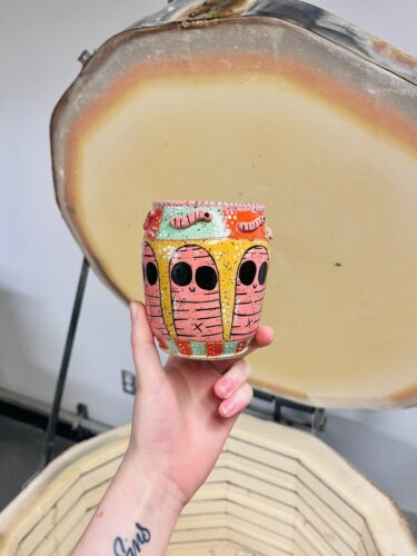 Mayer Ceramics is a local pottery business owned by ceramic artist Emma Mayer. Mayer creates all her pottery from start to finish herself and uses her whimsical playful ceramics as a way to cope with mental health. Mayer’s work is thrown on the pottery wheel and takes pride in making most of her glazes from scratch herself.