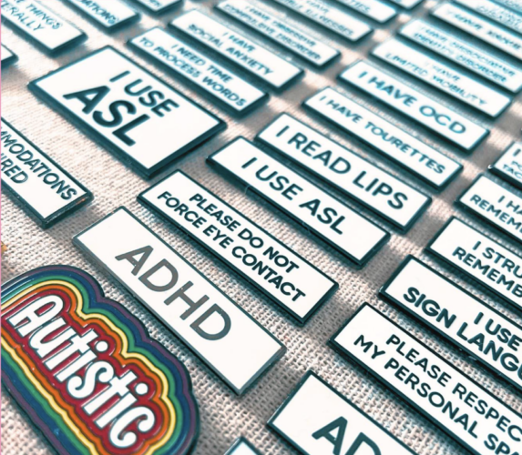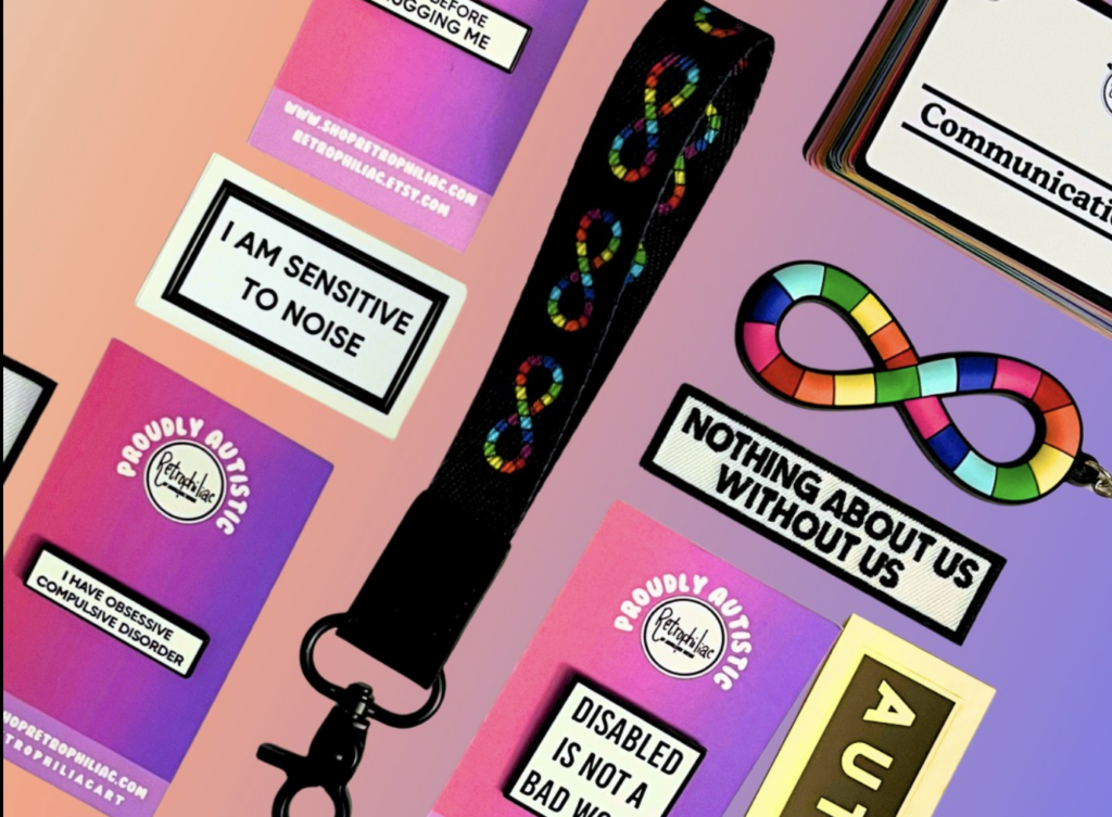 Retrophiliac is a disabled-owned small business designing bold enamel pins, stickers, lanyards, and accessories centered on disability advocacy, neurodiversity, chronic illness, dietary needs, and LGBTQ+ pride. Designed by Autistic self-employed artist Margaux Wosk, each piece is rooted in lived experience and made to spark conversation, visibility, and community connection.