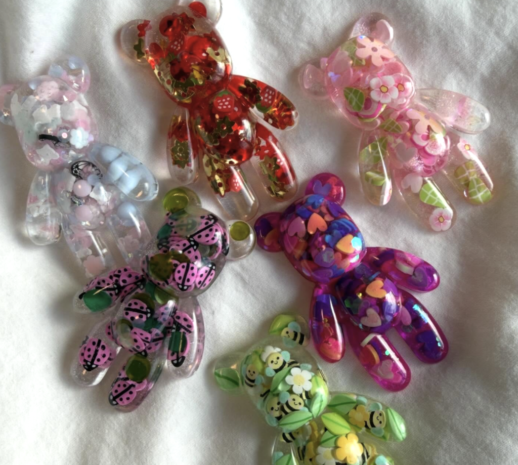 Handcrafted resin bears that can fit in your pocket, that can go anywhere with you, to bring you sunshine when your down